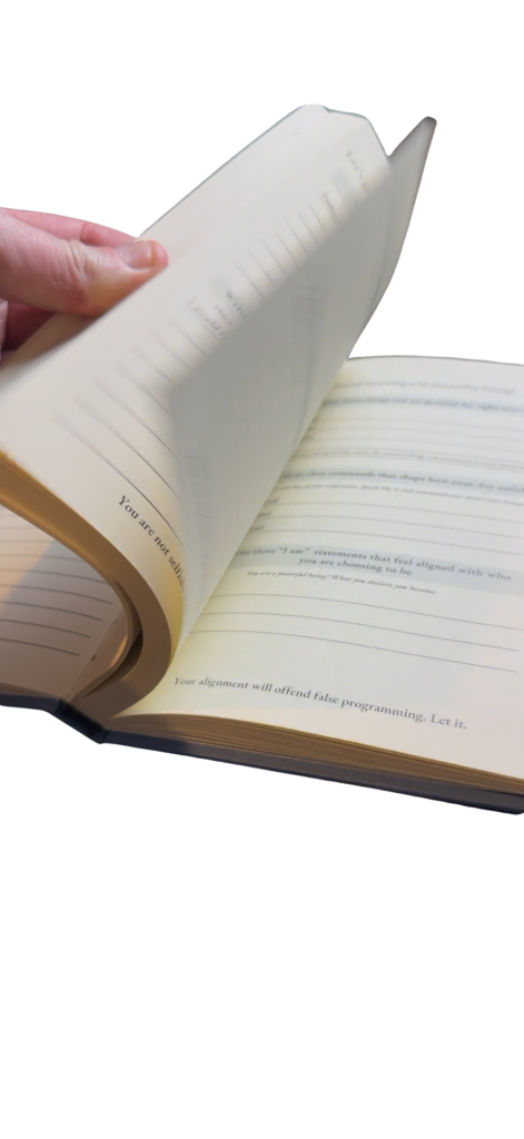 It is a 99-day quantum activation journal designed to align your identity, energy, and daily patterns with your original encoded design. Every prompt is a frequency key, recalibrating your inner world through gratitude, command, identity affirmation, and conscious pattern rewiring.